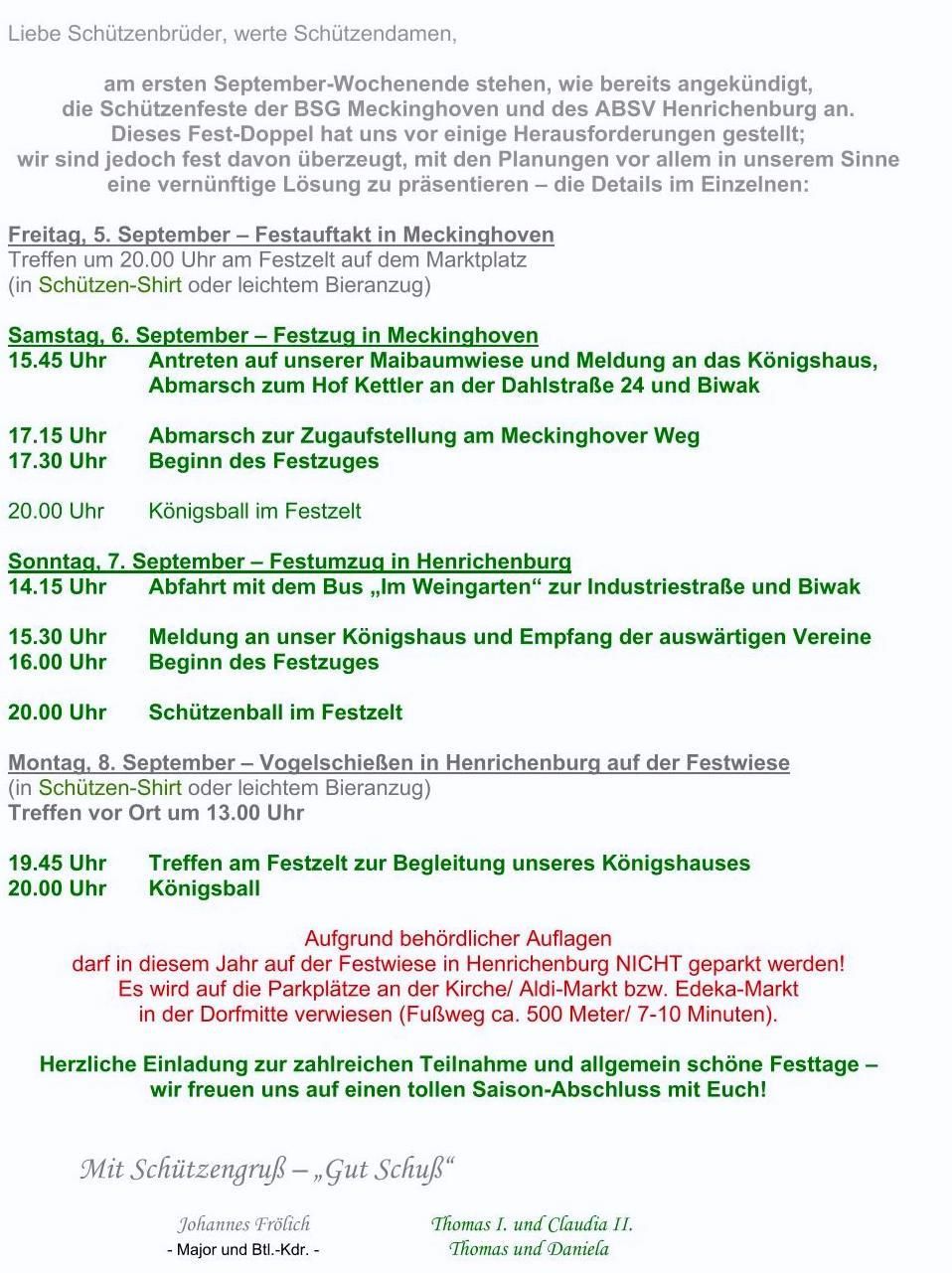 Jedoch statt nun in der Schützenfestschrift zu blättern, erreichen euch diese Zeilen, denn es ist bekanntlich anders gekommen als geplant und gehofft.