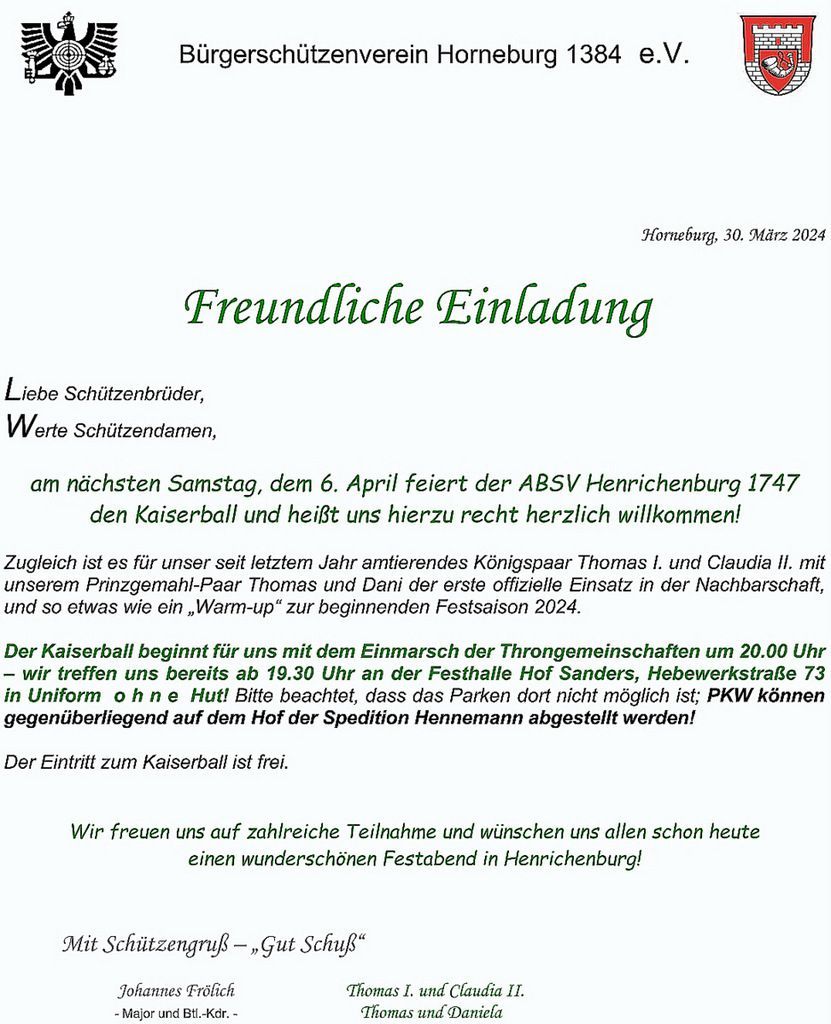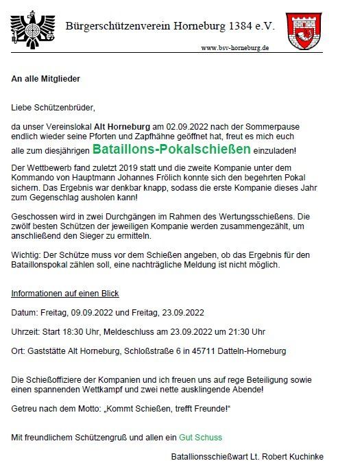 Wir freuen uns auf eure zahlreiche Teilnahme in Uniform - mit Schützengruß