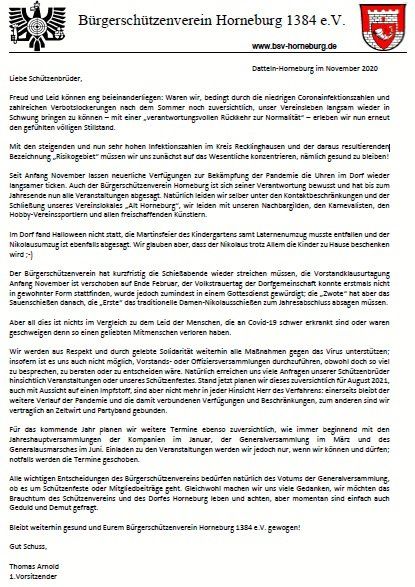 Jedoch statt nun in der Schützenfestschrift zu blättern, erreichen euch diese Zeilen, denn es ist bekanntlich anders gekommen als geplant und gehofft.