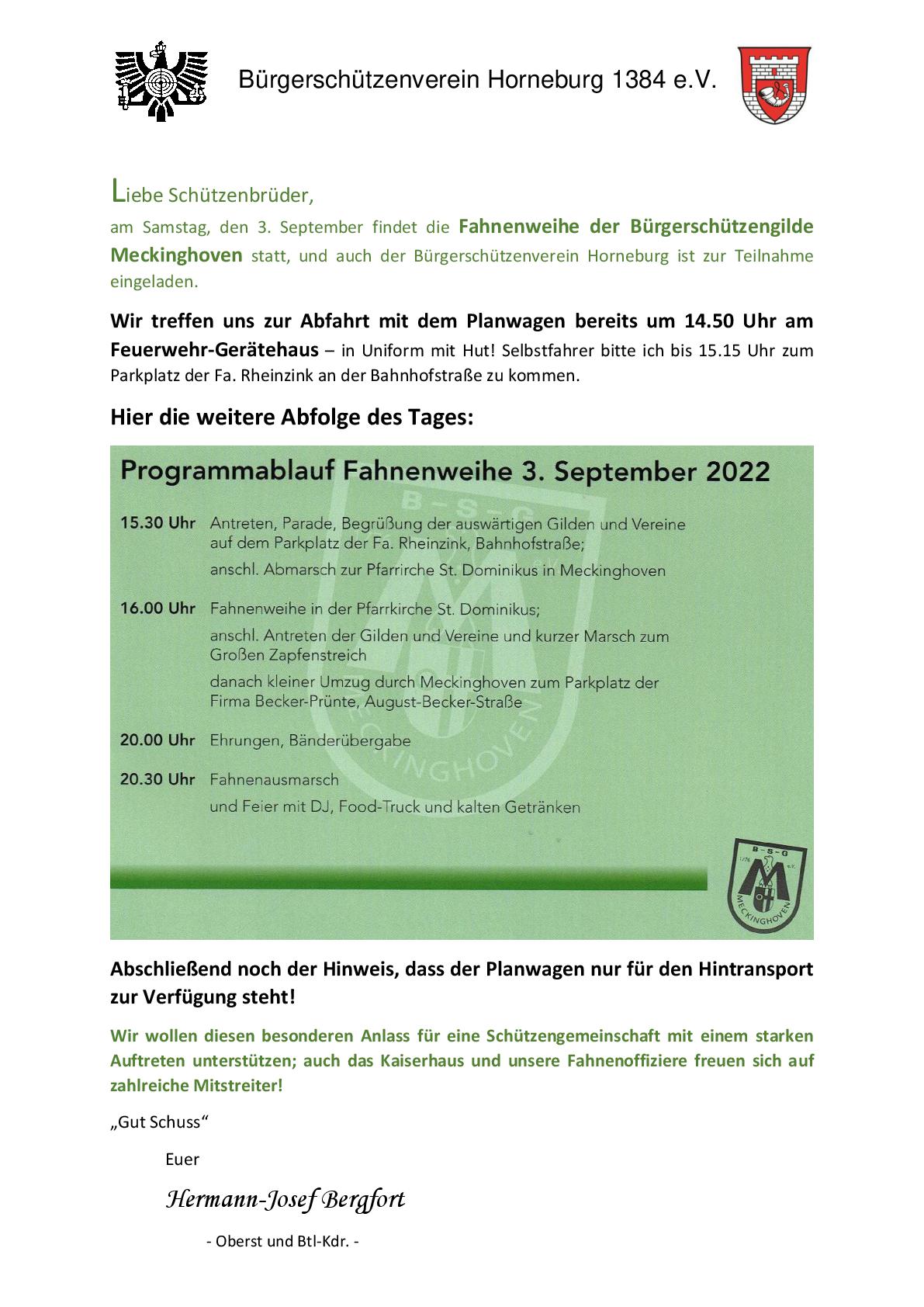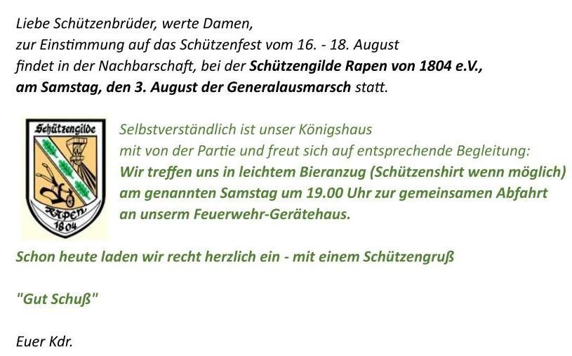 unter diesem Motto laden wir euch, liebe Schützenbrüder, samt Anhang zur