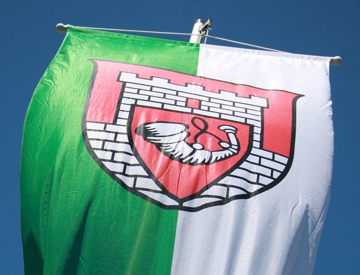 Hisst die Fahnen, dekoriert "grün und weiß"
