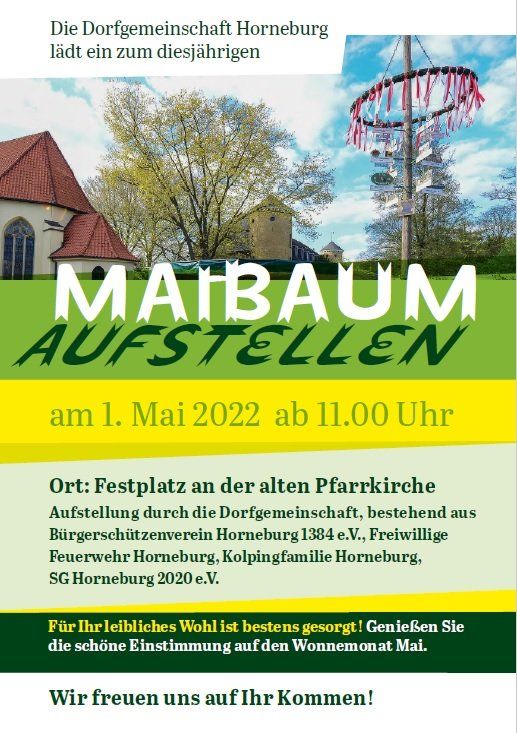 Am Mittwoch, den 25. März treffen sich um 19:30 Uhr in der Gaststätte "Alt Horneburg" Vertreter des BSV Horneburg mit den Nachbarschaften, Vereinen und Institutionen zur Planung des diesjährigen Dorfschmucks – ca. ein halbes Jahr vor dem großen Schützenfest, das vom 28. - 31. August 2026 in der Freiheit Horneburg gefeiert wird.